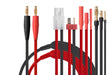 Dieses universelle Ladekabel ist die ideale Lösung für alle, die unterschiedliche Akkustecker mit nur einem Kabel laden möchten. Auf der Ladegeräteseite verfügt das Kabel über 4 mm vergoldete Bananenstecker (G4), während die Akkuseite gleich mehrere gängige Anschlussoptionen bietet.