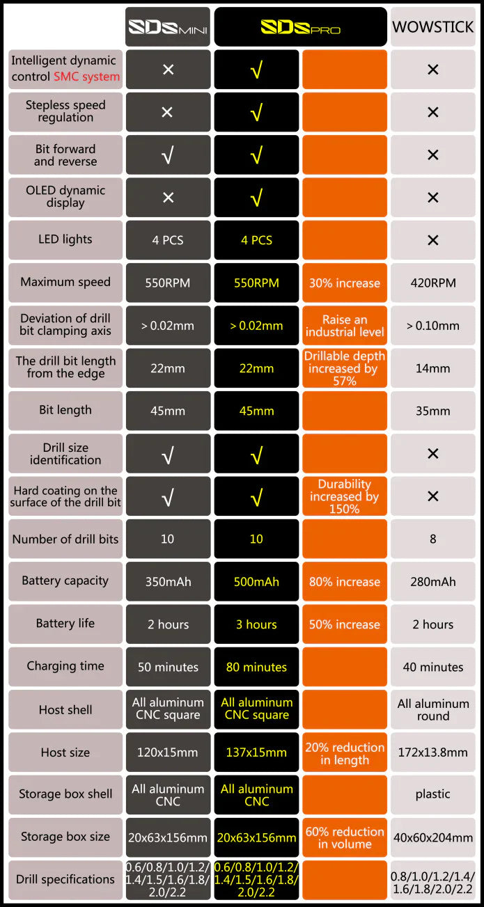 The creative design of Super Mini Size brings upon a sense of perfection and experience. It makes it easier to operate single-handedly! The simplicity and the compact design of the SDS mini makes it attractive and is a must-have tool in your workshop!