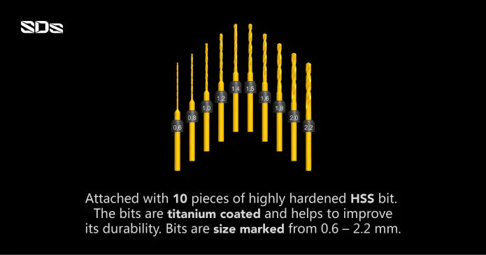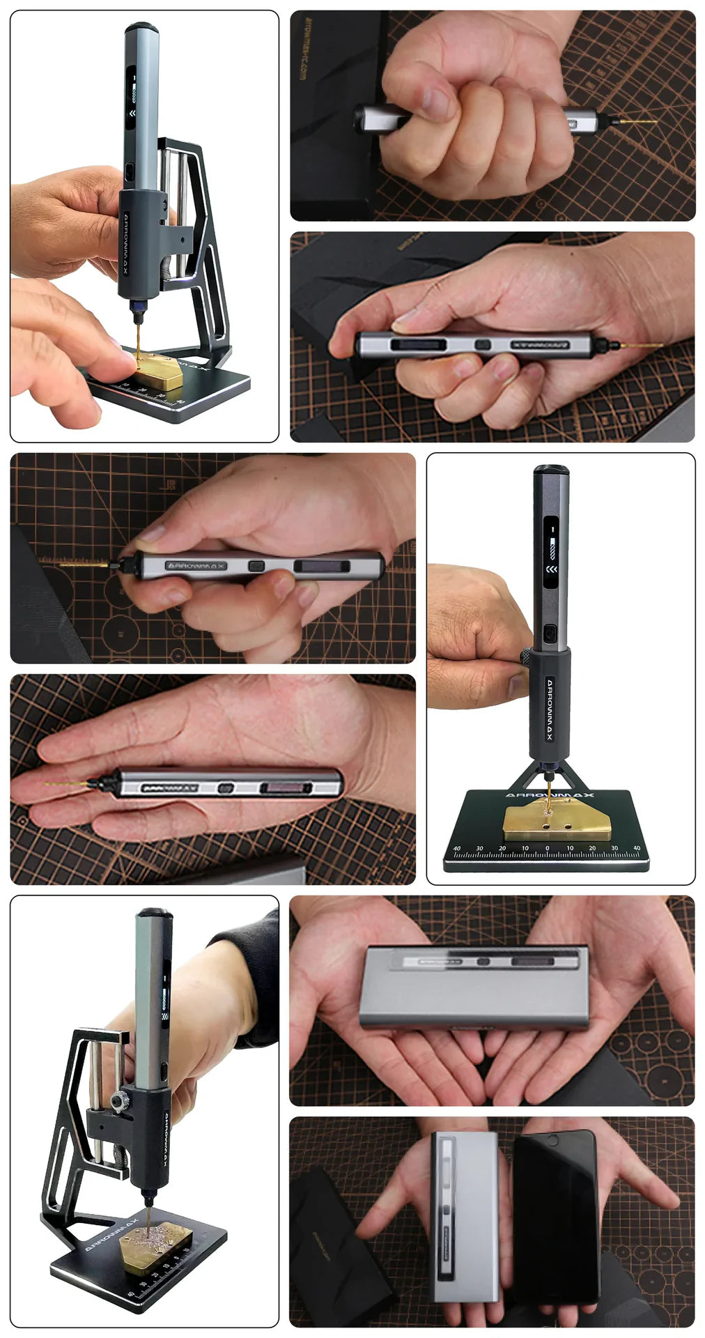 Arrowmax Smart Electric Drill. SDS, It is a miniature handheld drill that is about the same size as its predecessor. Drilling through a variety of materials such as wood, plastic, resin, leather, aluminium, copper, and brass.