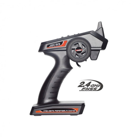 Includes Syncro KT-531P transmitter with a steering wheel that mimics the steering wheel of a real car and pistol-grip throttle (speed control). Adjust the neutral position of steering and throttle with trims, as well as steering angle with dual rate adjustment. It is also possible to operate in training mode with a reduced vehicle speed (training mode is the default setting).