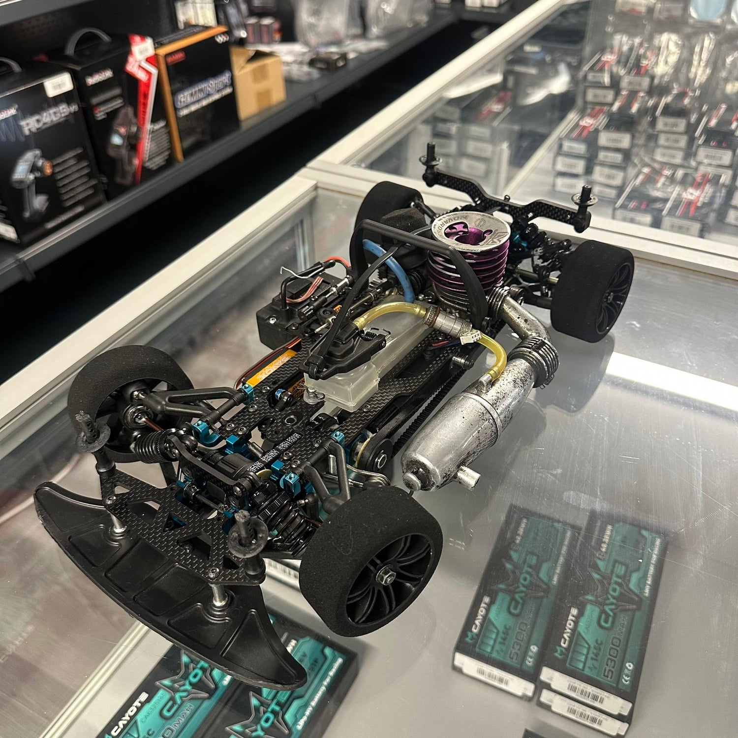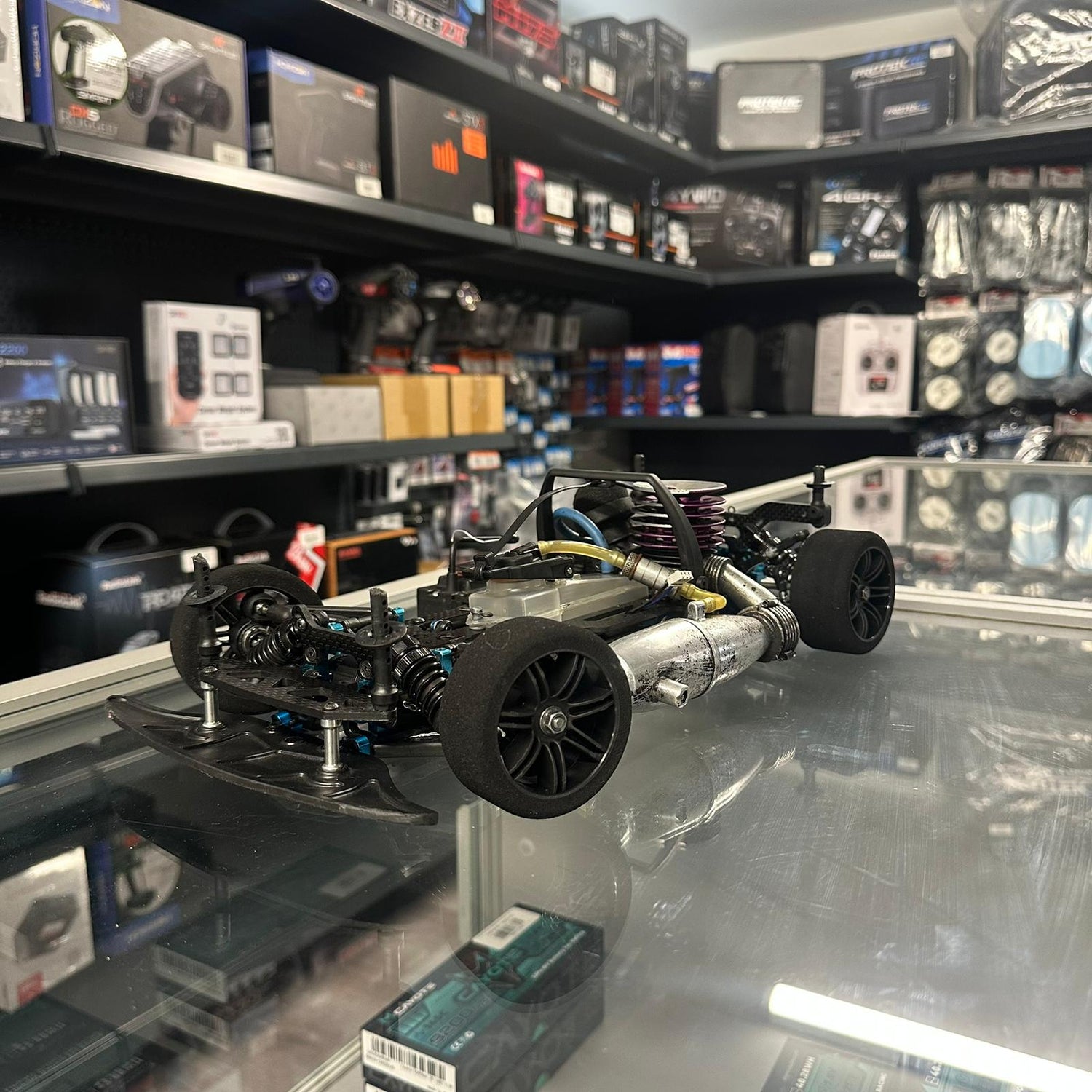Das Fahrzeug wird komplett montiert verkauft – ideal für Fahrer, die ein hochwertiges Nitro-Onroad-Modell ohne Aufbau suchen.
